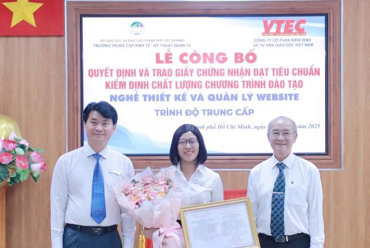 Trường TC Kinh tế – Kỹ thuật Quận 12 đón nhận GCN kiểm định chất lượng 3 chương trình...