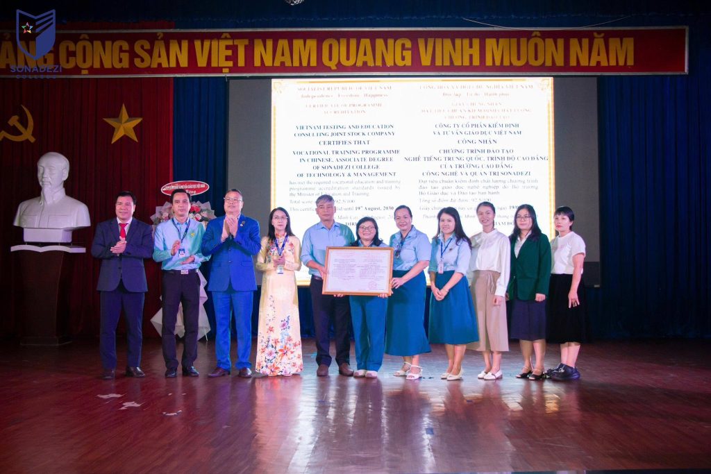 “Lễ Công bố và cấp Giấy chứng nhận đạt tiêu chuẩn kiểm định chất lượng cho chương trình đào tạo Ngành Quản trị Khách sạn và Ngành Tiếng Trung Quốc; Lễ ký kết MOU và tiếp nhận thiết bị, vật tư đào tạo từ các doanh nghiệp tài trợ” không chỉ là sự kiện mang tính khẳng định uy tín, mà còn mở ra cơ hội học tập, thực hành và việc làm rộng mở cho sinh viên Sonadezi College trong tương lai.