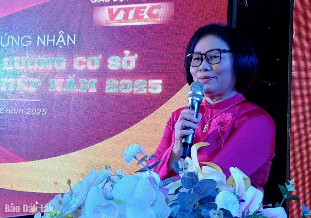 Phát biểu tại lễ trao chứng nhận, TS Nguyễn Mạnh Cường, Phó Giám đốc Công ty Cổ phần Kiểm định và Tư vấn Giáo dục Việt Nam cho biết, trong gần 20 năm hình thành và phát triển, Trường Trung cấp Buôn Ma Thuột đã kiên trì xây dựng và duy trì “văn hóa chất lượng” một cách thực chất, bền vững. Nhà trường chủ động tham gia kiểm định chất lượng giáo dục nghề nghiệp theo bộ tiêu chí, tiêu chuẩn mới được ban hành tại Thông tư số 14/2024 của Bộ LĐ-TB&XH.
