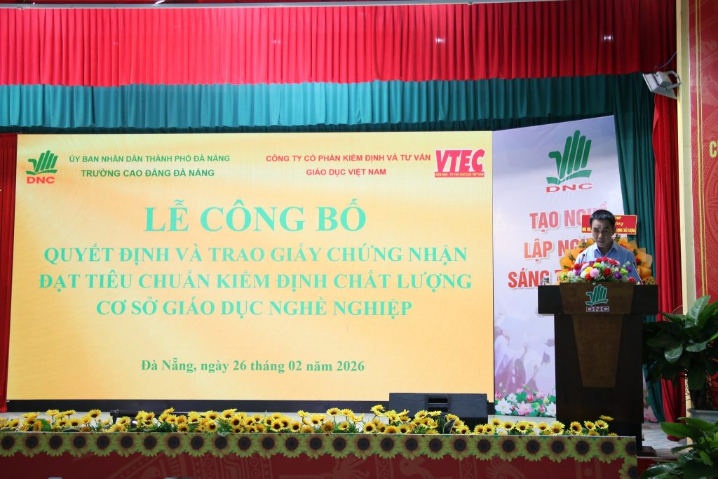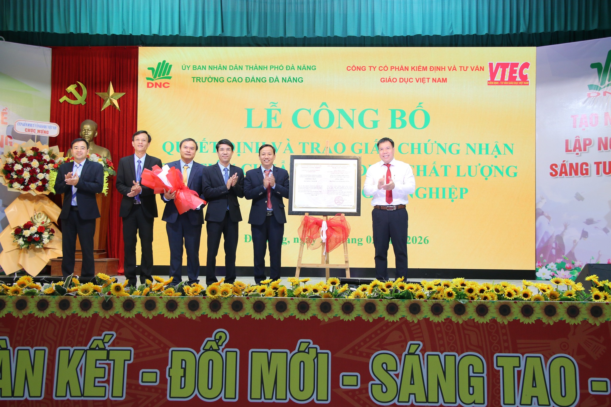 Trường Cao đẳng Đà Nẵng vừa chính thức được công nhận đạt tiêu chuẩn kiểm định chất lượng cơ sở giáo dục nghề nghiệp. Kết quả này là minh chứng cho những nỗ lực bền bỉ của Ban Giám hiệu, cán bộ, giảng viên và sinh viên nhà trường trong việc nâng cao chất lượng đào tạo thời gian qua.